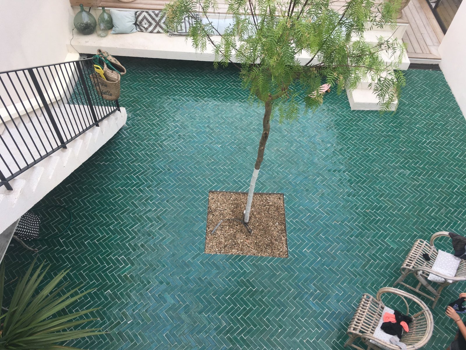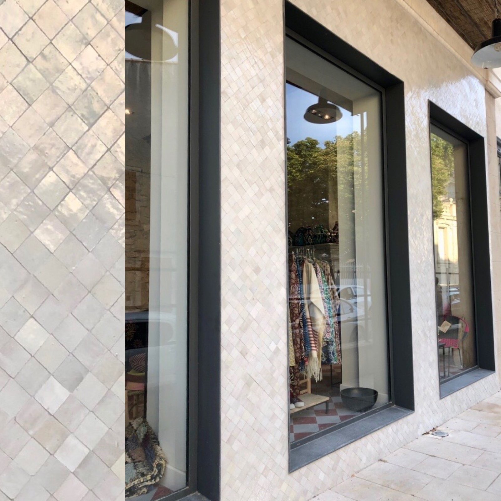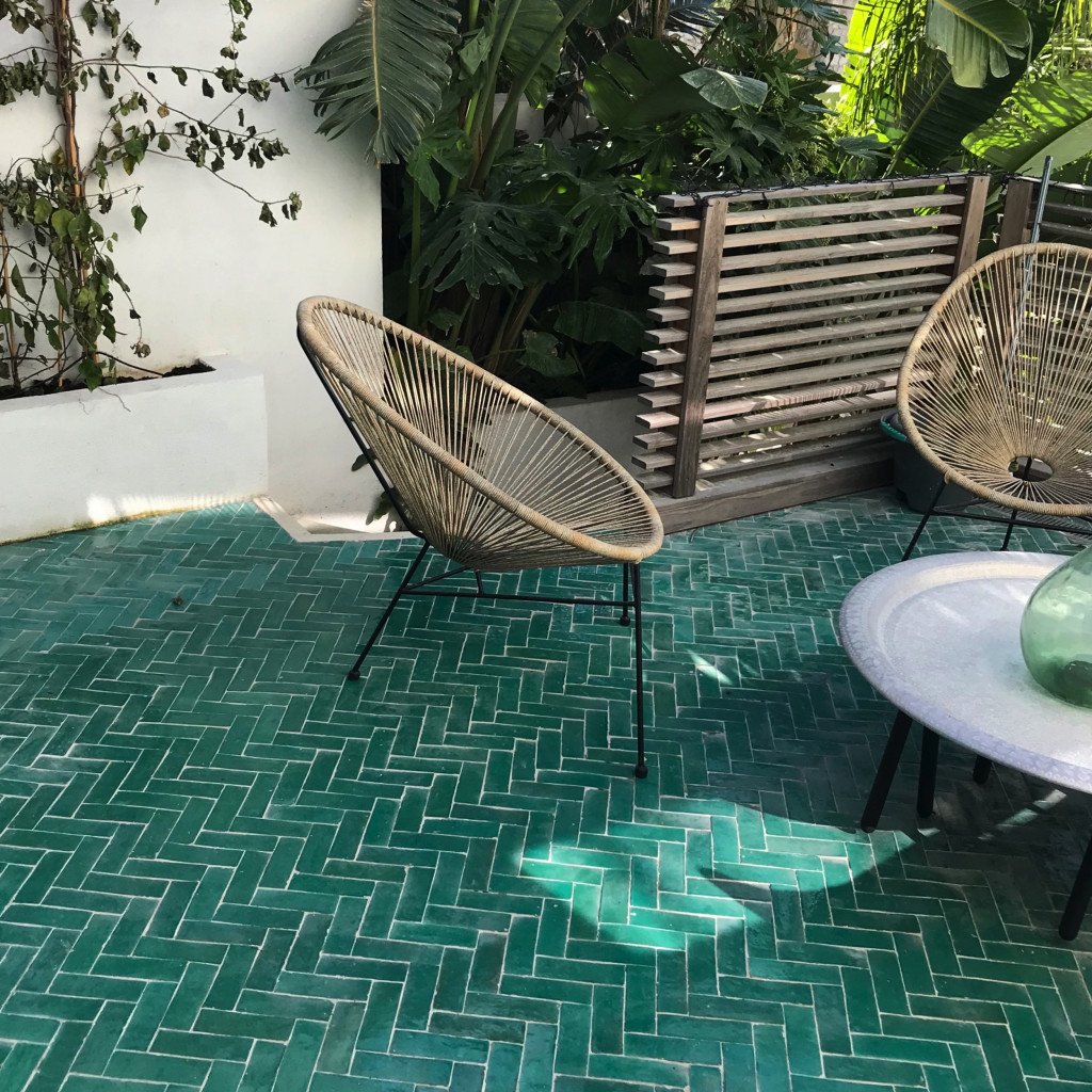 Bejmat beige chevron – Terrasse porte-fenêtre