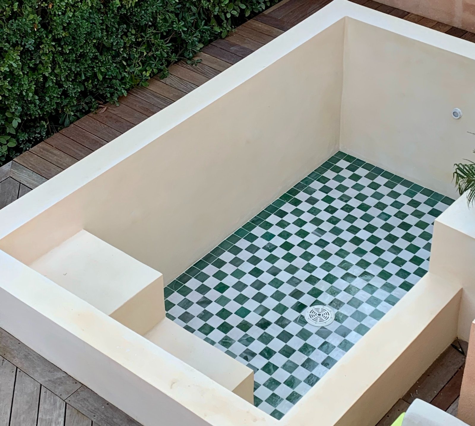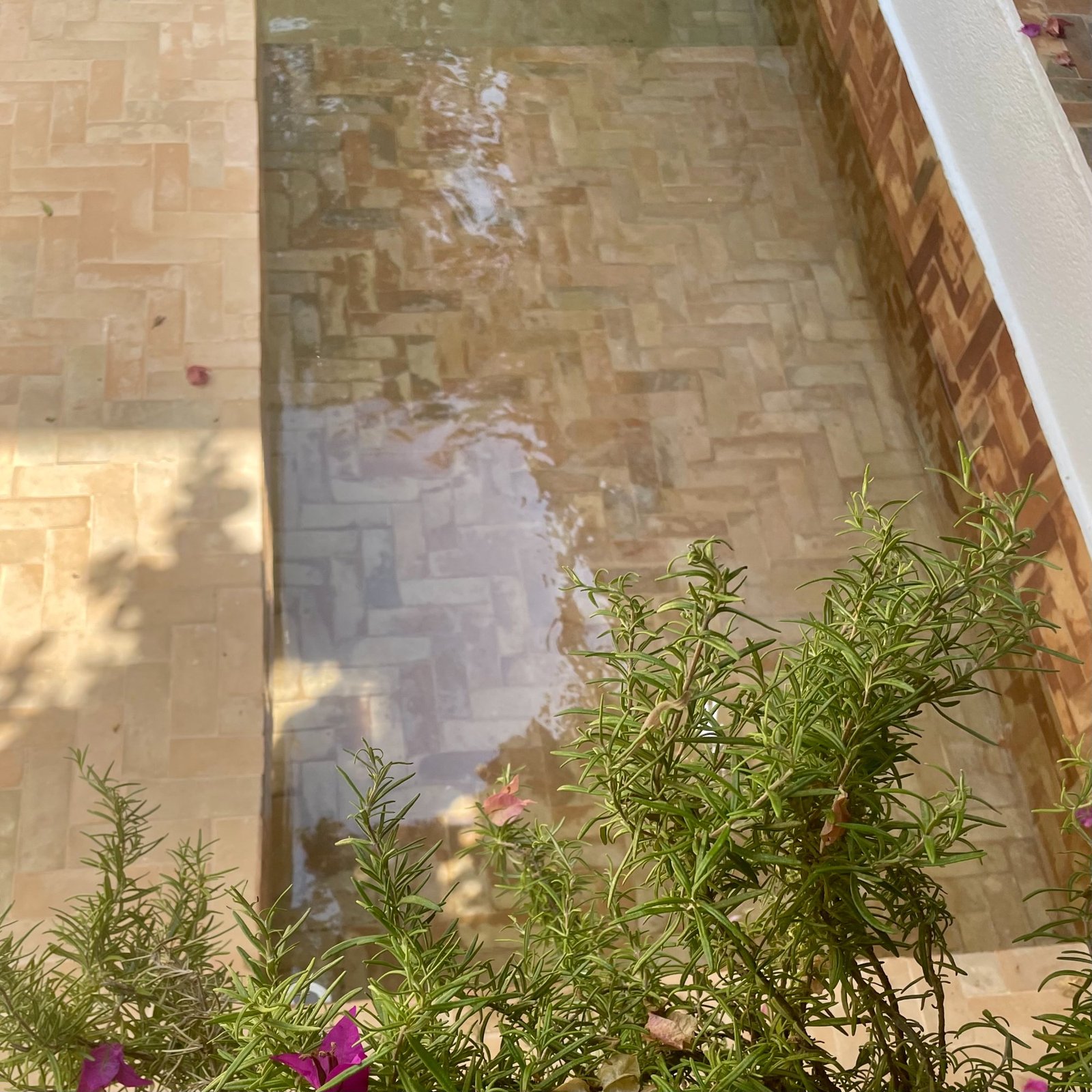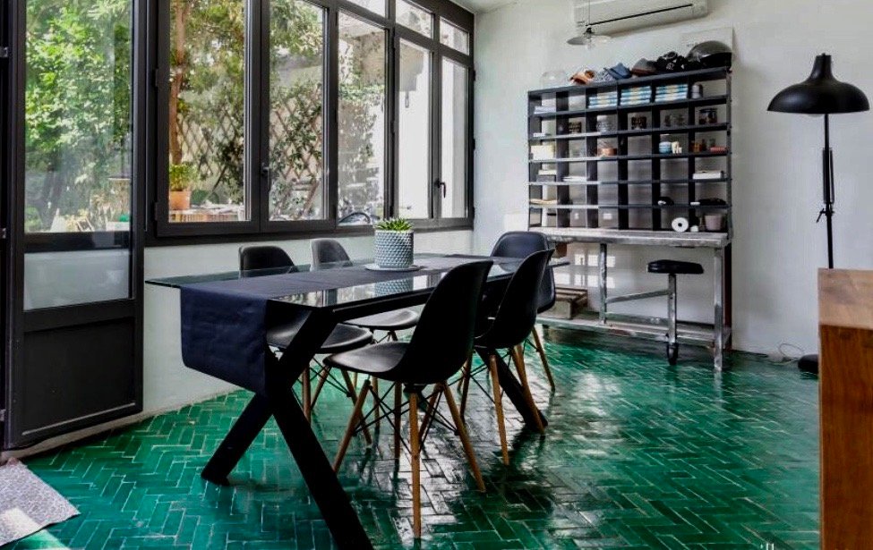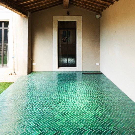 Bejmat beige chevron – Terrasse porte-fenêtre